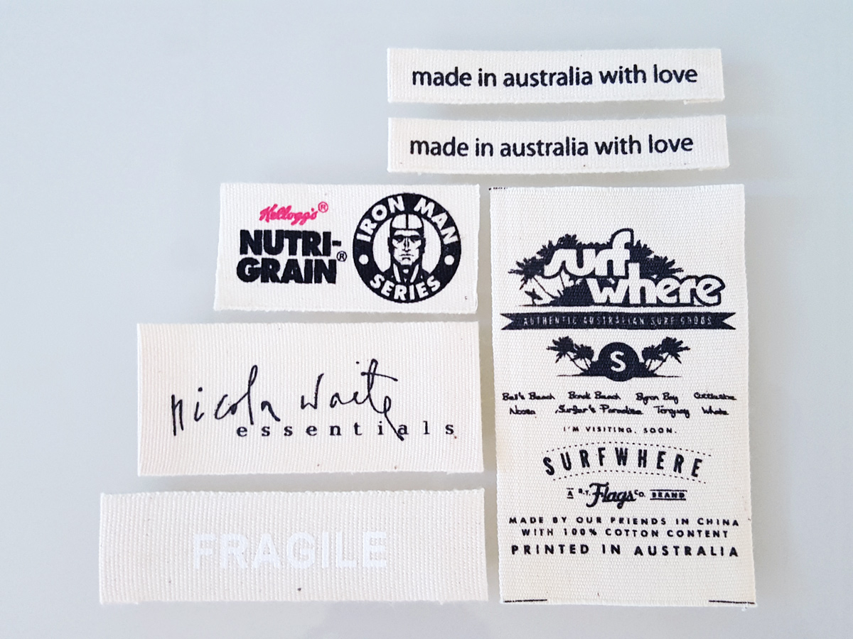 Printed Cotton labels can be dyed in any colors. The loop fold or end fold labels are recommended because the printed cotton labels will fray. They are popularly used for infant clothing.